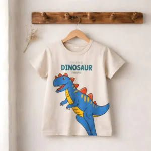 Friendly Colorful Dinosaur Graphic Tee - Cream