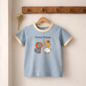 Funny Friends Cat & Chicken Ringer Tee - Light Blue