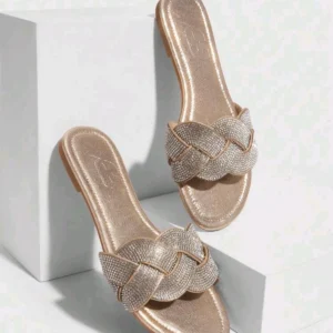 Glamorous Silver Braided Rhinestone Flat Sandals | Zenvy Closet
