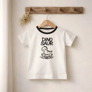 "Dino Saur" Jumping T-Rex Ringer Tee - White & Black