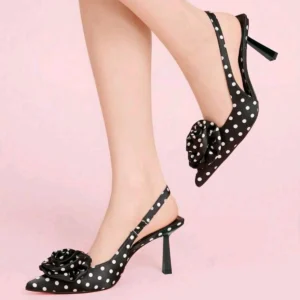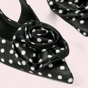 Polka Dot Pointed Slingbacks with Rose Embellishment | Zenvy Closet